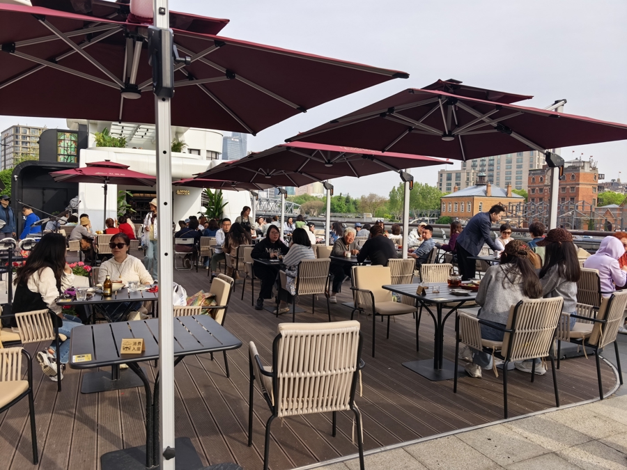 今年,虹口制订工作指引,通过“两区划分”,鼓励和规范外摆经济发展。“城市形象展示区”,聚焦“一江一河”与城市窗口地带。比如,北苏州路部分路段鼓励沿街商户设置外摆区,引入日咖夜酒、西式简餐、甜品烘焙,亲水平台将增座椅搭配绿植形成“客厅化”氛围。“活力功能拓展区”,则更贴近市民日常。北外滩来福士、瑞虹新天地等重点商圈以及社区商业、产业园区等均被纳入外摆鼓励范围。这些区域可以结合社区氛围设置明档小吃、风物市集、民俗食品杂货摊等。